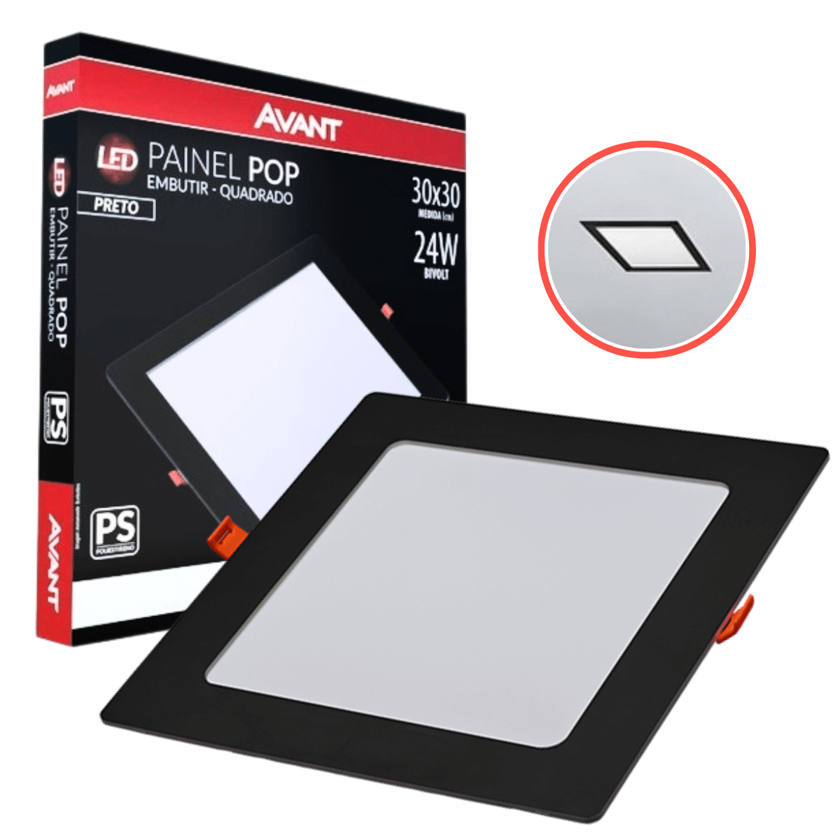 Painel Plafon Embutir Avant Pop Preto 6500K 24W 30x30cm