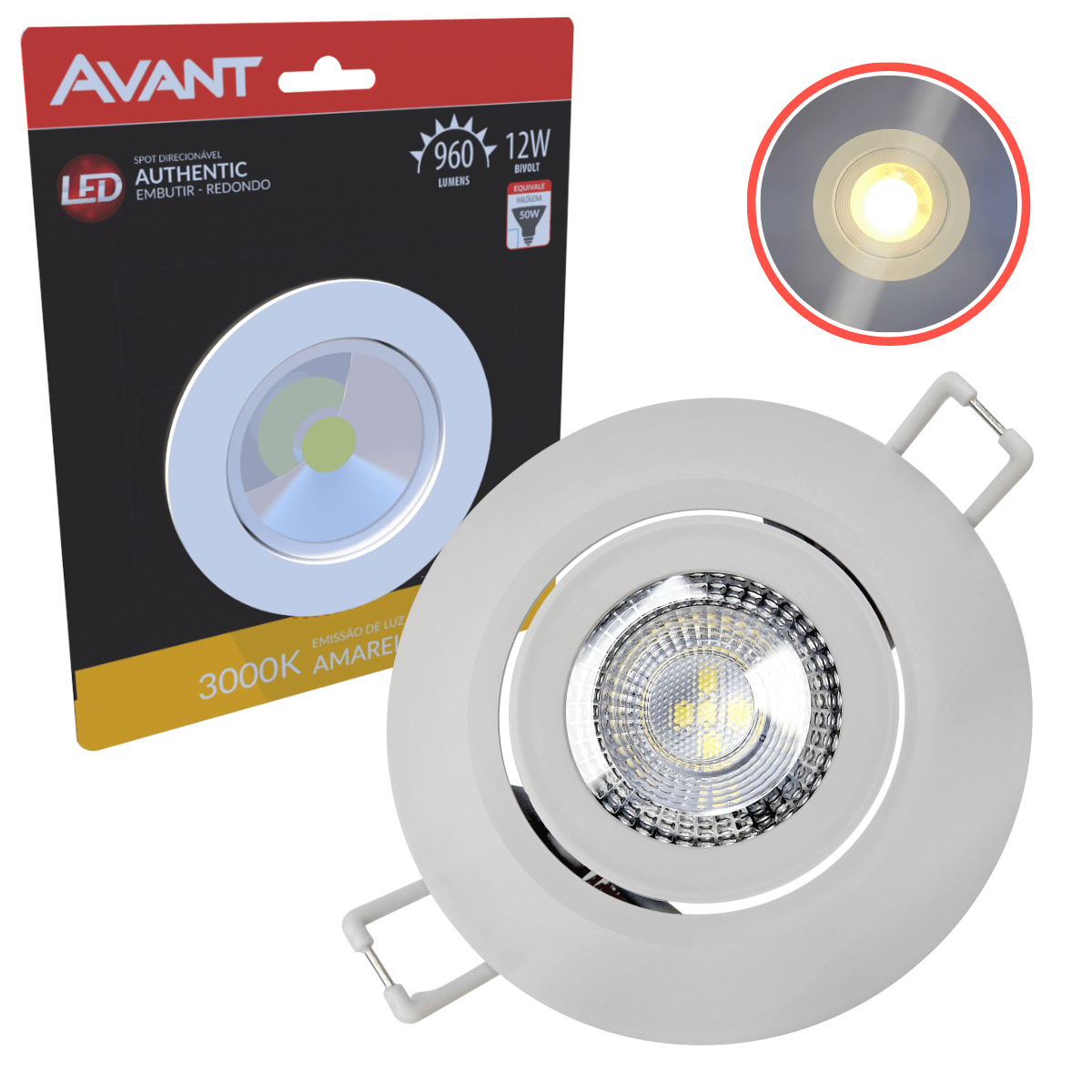 Spot Led Authentic Embutir Redondo Branco 12W 3000K Branco Quente Bivolt Avant