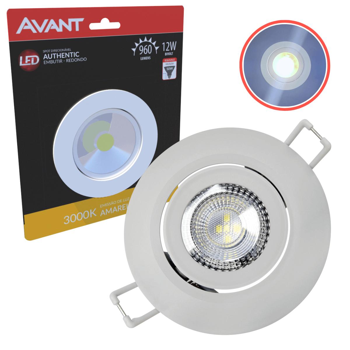 Spot Led Authentic Embutir Redondo Branco 12W 6500K Branco Frio Bivolt Avant